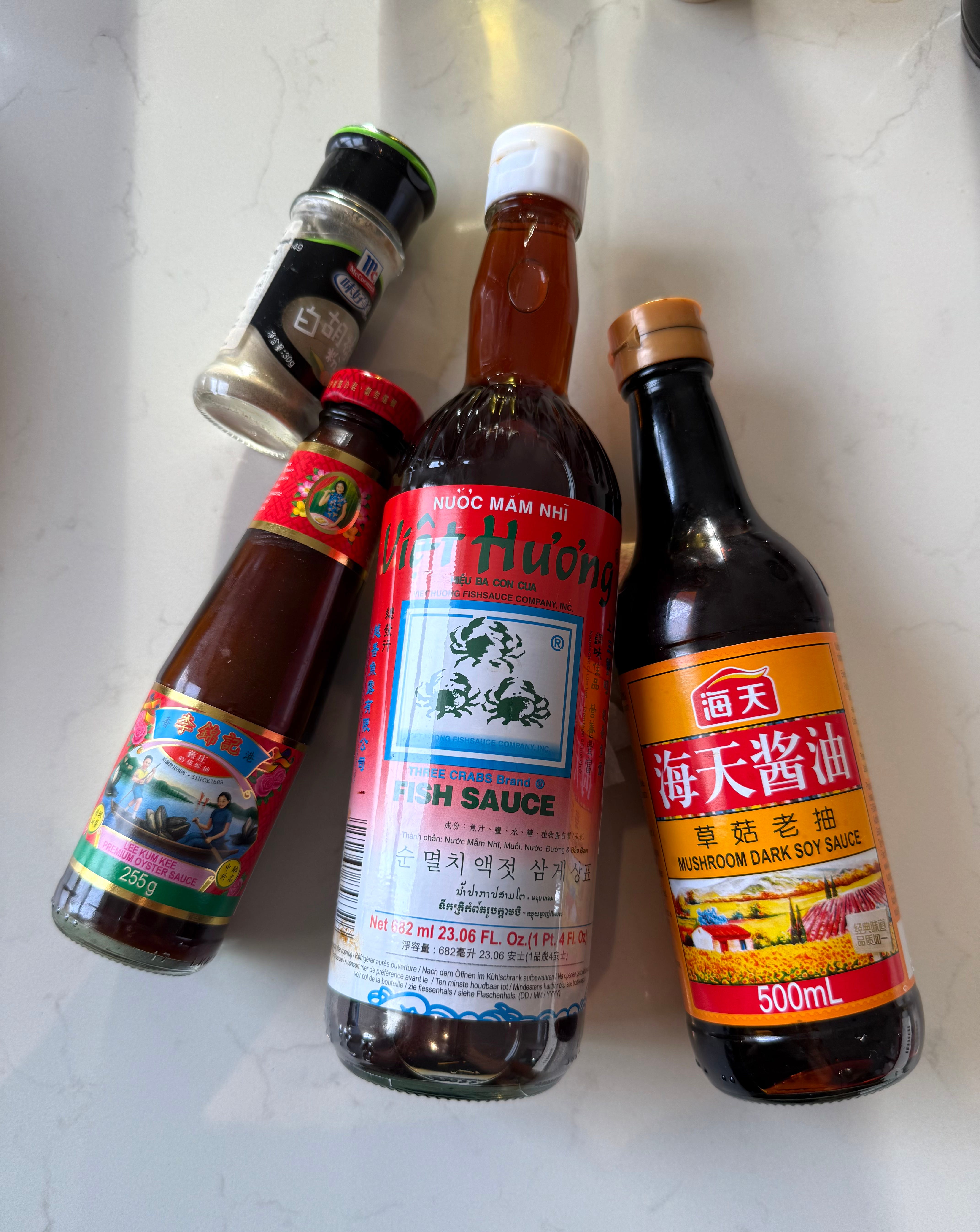 Add the oyster sauce and stir through, follow with the fish sauce and sugar.
